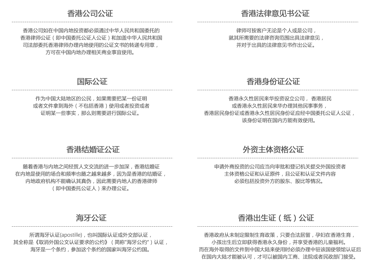 香港律师公证文书的种类